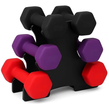 Kit 3 Pares de Halteres Sextavados com Suporte | 1kg 2kg 3kg (Total 12kg) | Pesos de Mão Emborrachados Antiderrapantes